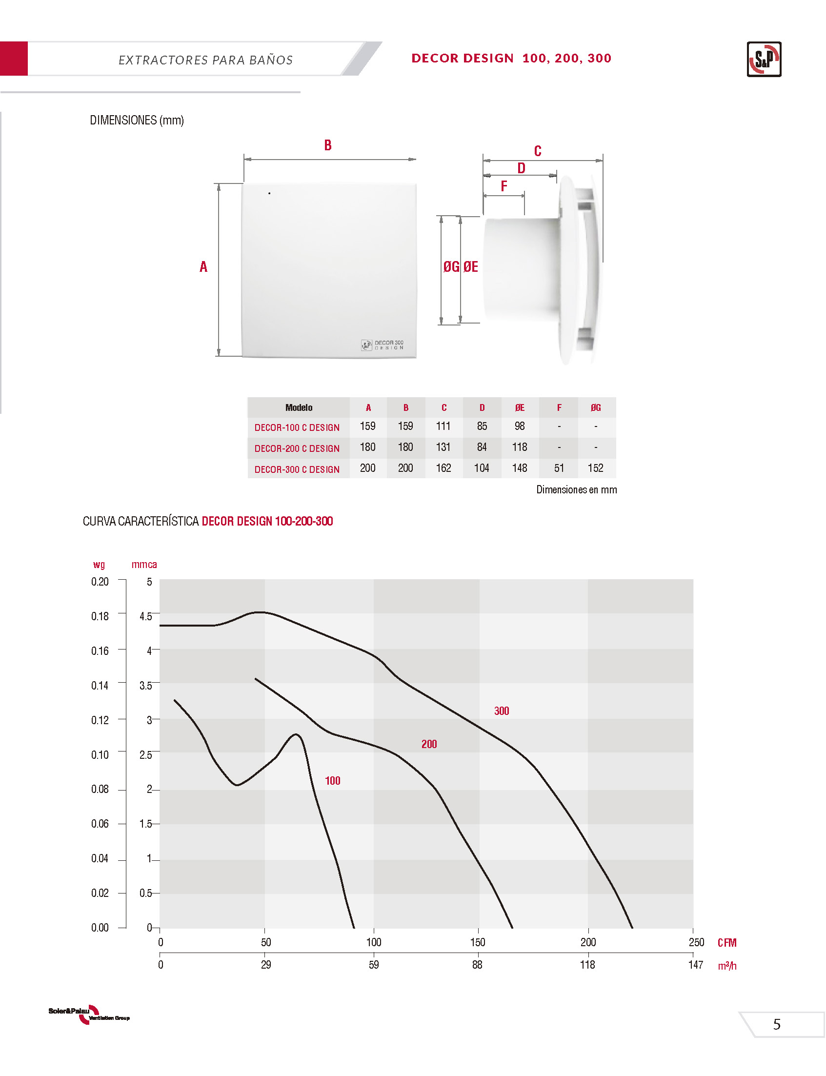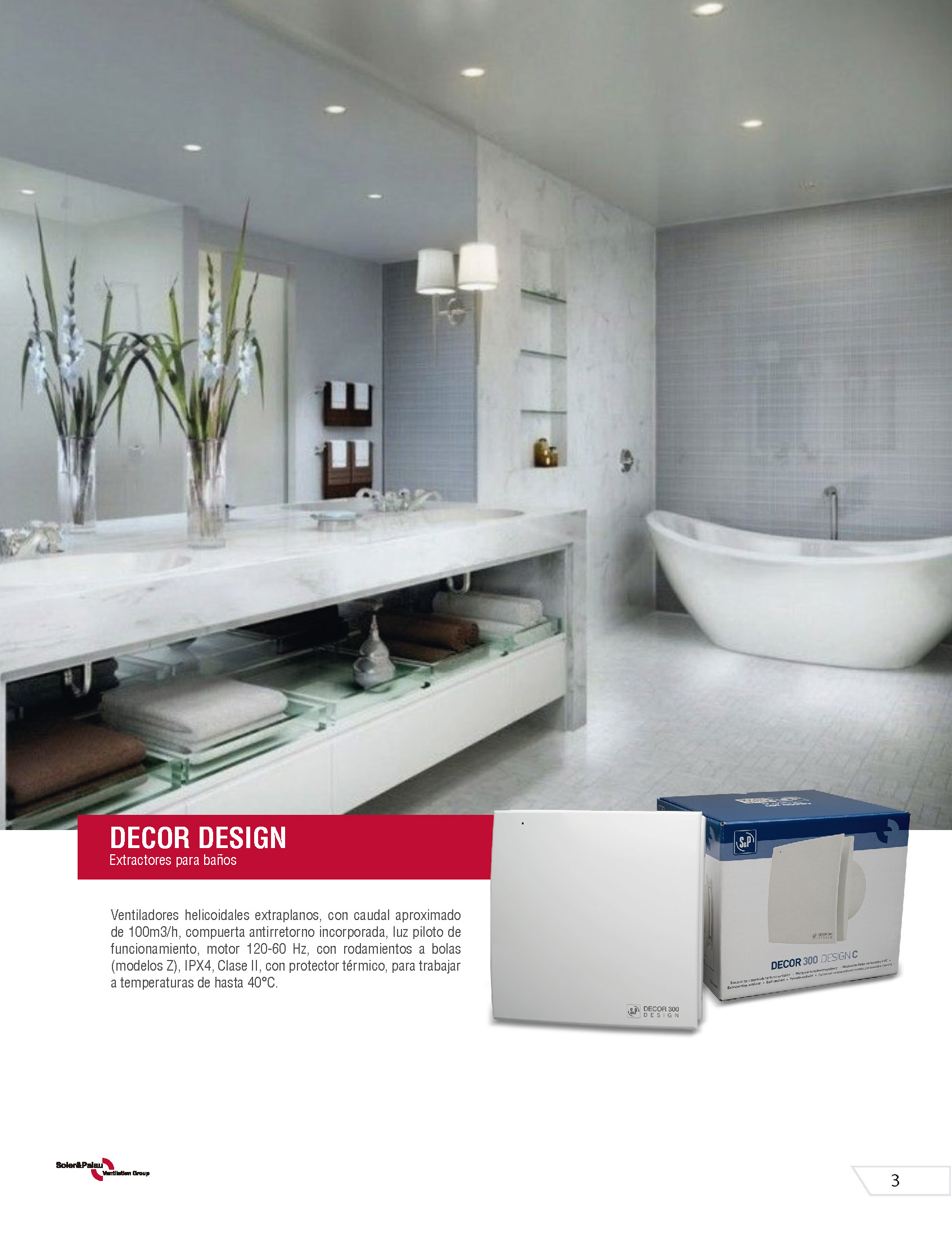 Extractor para Baño DECOR 100 C DESIGN extraplano y silencioso, ideal para baños pequeños y sanitarios residenciales. Cuenta con compuerta antirretorno incorporada, luz piloto de funcionamiento, protección térmica y protección IPX4 – Clase II, garantizando seguridad y durabilidad en zonas húmedas.